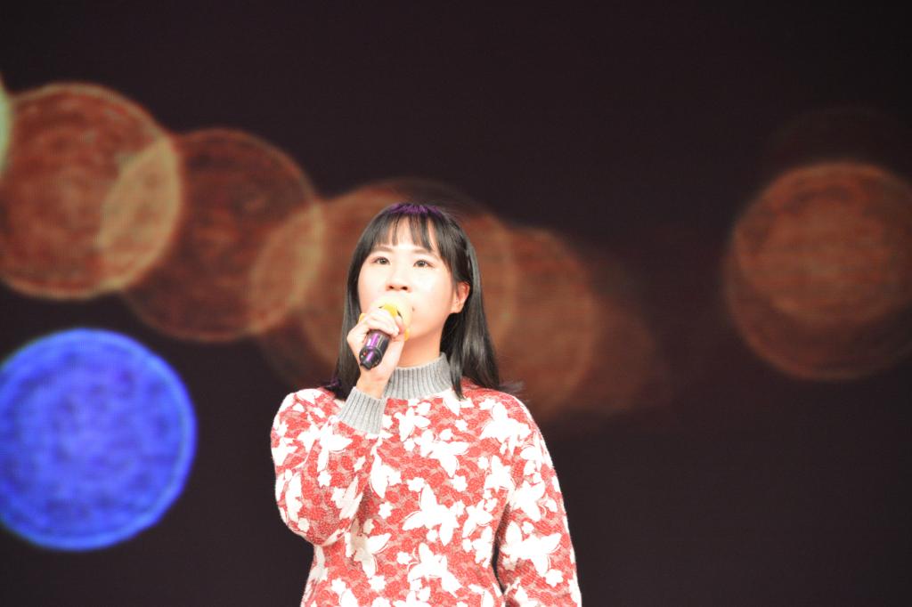 在刘经理的衷心寄语后,晚会正式开始。2017年太阳成集团tyc122cc“秋之声”歌唱比赛冠军高伊琳同学带来歌曲《给未来的自己》,让我们感受到满满的正能量,在憧憬中构建自己的未来。